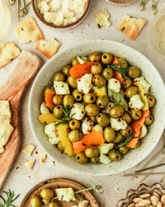 Meet my favorite super-easy, super crowd-pleasing appetizer! These marinated Spanish olives are tossed with citrus and herb-infused oil, and served with shards of buttery,...
