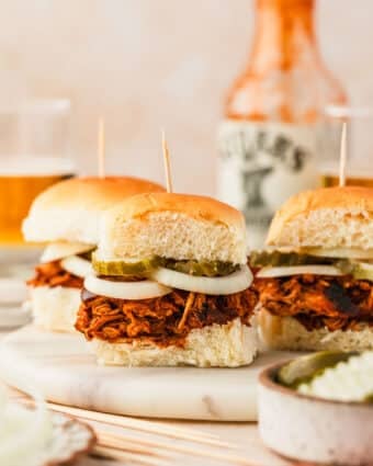 These pulled chicken sliders combine juicy, slow cooked chicken, tangy BBQ sauce, and fluffy Hawaiian rolls for a super easy and amazing party snack!...