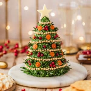 - Use a toothpick to secure the cheese star topper to the top of the Christmas tree. Enjoy with crackers!