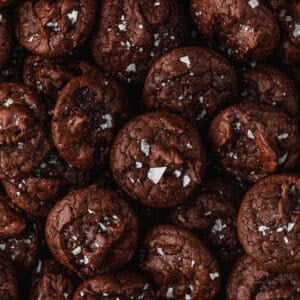 Corner brownie lovers, I have something special for you today! These mini brownie crinkle cookies are chewy, fudgy, and full of rich dark chocolate. Plus, they have a shiny, crackly top that’s just so satisfying to bite into. The whole recipe comes together in under 30 minutes, and you’ll end up with 60 bite-sized cookies. Just add a sprinkle of flaky salt and devour.